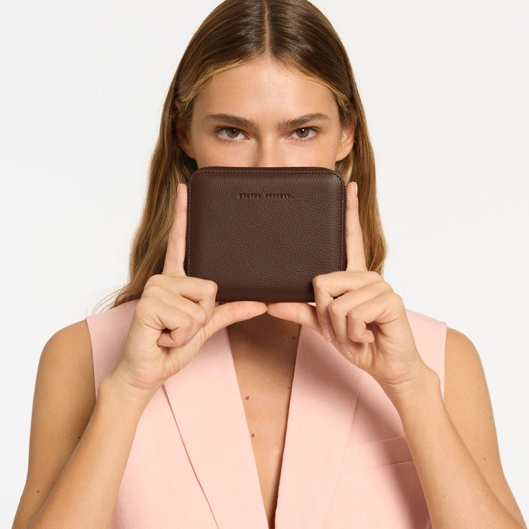 A compact jewellery wallet for home or travel. Featuring snap button straps to keep your rings and earrings together, a gathered elastic pocket for your necklaces and bracelets, and an additional zip pocket inside for other valuables.