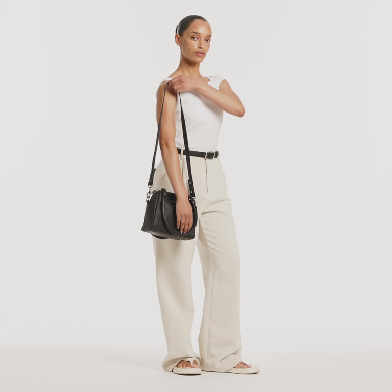 Good things come in small packages. Mini Mountains is a more compact version of the iconic Last Mountains bag. This day to night companion can be worn on elbow, shoulder, or cross body (with included long strap). Features a wide-opening main compartment, longer shoulder strap for added comfort, and secret magnet-close pocket on the outside for your phone etc.